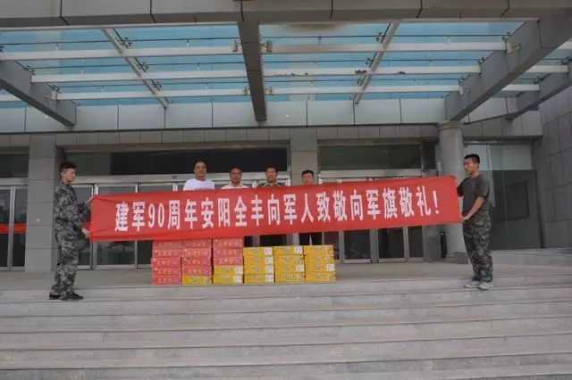 中國人民解放軍建軍90周年,2017年8月1日,安陽全豐生物科技有限公司副總經(jīng)理楊紅軍,全豐航空植??萍脊煞萦邢薰靖笨偨?jīng)理、安陽太行低空空間應用職業(yè)培訓學校校長陳磊,綜合辦副主任張志剛一行受全豐公司董事長兼總經(jīng)理王志國的委托,帶著對駐安子弟兵的深情厚誼到北關(guān)區(qū)武裝部、安陽市看守所、安陽市武警消防中隊看望慰問部隊官兵,向他們致以節(jié)日的問候和美好的祝福,并送去了慰問物品,受到官兵們的熱烈歡迎!