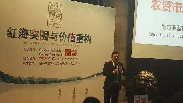 南方略營銷咨詢公司劉祖軻報告題目《農資市場與紅海突圍之路》,他提出紅海突圍應該朝著提升消費者的幸福指數(shù);降低種植戶痛苦指數(shù),從賺種植戶的錢到幫種植戶賺錢;提升經(jīng)銷商創(chuàng)富指數(shù),為客戶提升價值三個方向發(fā)展。