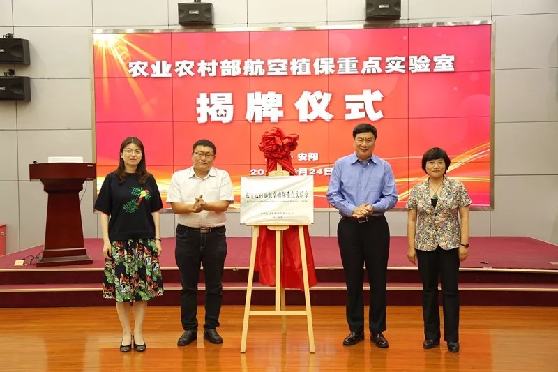 會(huì)議由華南農(nóng)業(yè)大學(xué)博士生導(dǎo)師蘭玉彬教授主持,實(shí)驗(yàn)室主任王志國(guó)致辭。之后全豐公司王志國(guó)董事長(zhǎng)、華南農(nóng)業(yè)大學(xué)蘭玉彬教授、農(nóng)業(yè)農(nóng)村部南京農(nóng)業(yè)機(jī)械化研究所薛新宇研究員和安陽(yáng)工學(xué)院張玲副校長(zhǎng)代表四家共建單位共同為農(nóng)業(yè)農(nóng)村部航空植保重點(diǎn)實(shí)驗(yàn)室揭牌。