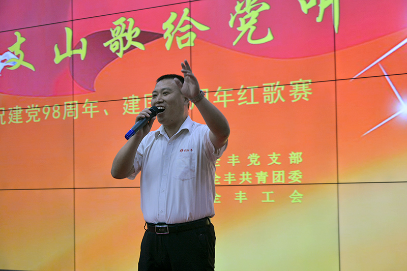 總結(jié)表彰會(huì)結(jié)束后,在全體人員高唱國(guó)歌《義勇軍進(jìn)行曲》的嘹亮歌聲中,慶祝建黨九十八周年紅歌賽拉開了下半場(chǎng)的序幕。此次紅歌賽分為集體賽和個(gè)人賽,共有七支參賽隊(duì)伍和四名獨(dú)唱分別角逐一二三等獎(jiǎng)。從歌曲內(nèi)容、服裝隊(duì)形、演唱水平等方面進(jìn)行綜合評(píng)比打分。經(jīng)過激烈角逐,制劑分公司合唱《保衛(wèi)黃河》榮獲集體一等獎(jiǎng),航空和原藥分獲二三等獎(jiǎng)。制劑分公司袁明演唱的《祖國(guó)慈祥的母親》榮獲個(gè)人賽第 一名,仝慧和周俊峰分獲二三名。